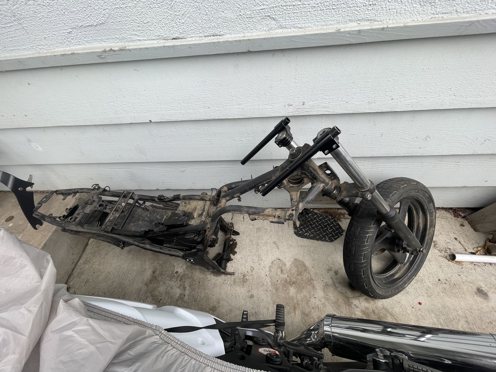Owes probably too much on tags so I decided to do a frame swap. Last application with the DMV is from August 2023 from previous owner. Didn’t investigate further and bought a non-op frame and swapped everything from this to the other frame. $100 OBO