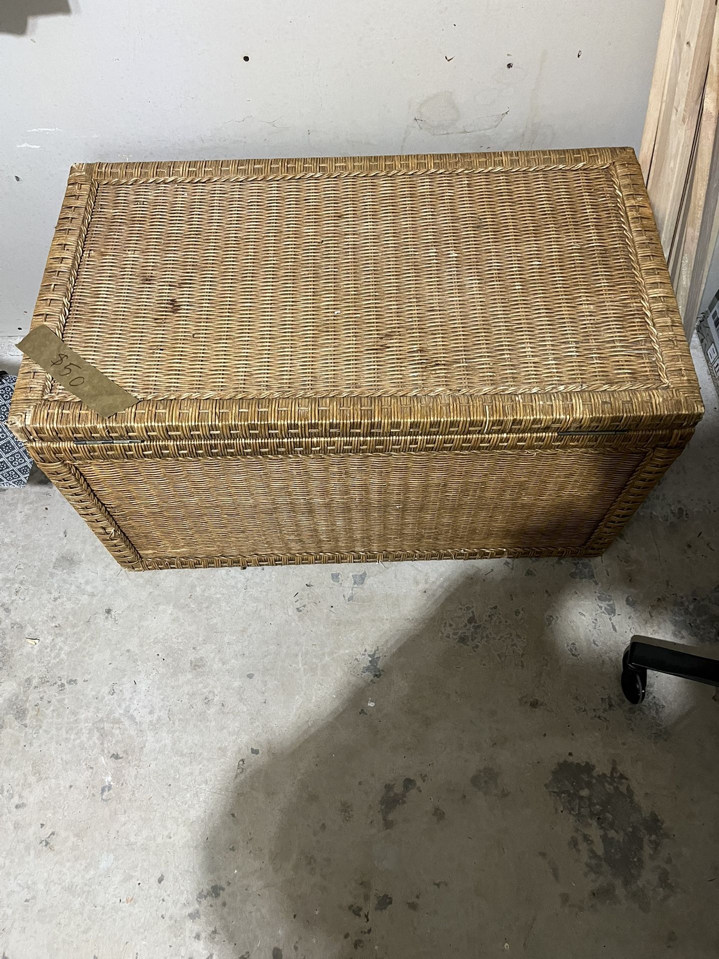 Wicker storage trunk,dimensions are 21”H 36”W 20”D