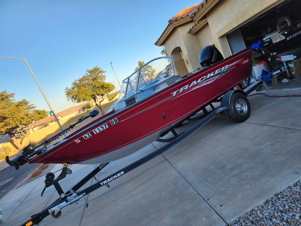 Tracker 2020 pro guide WT 175.deep V Boat 18 feet..very good condition Mercury 115 hp 4 stroke. 21 hours Everything on boat working Good. Has 2 live well. Fish finder. Trolling motor..good 3 tires Trailer folding away..good Bimini & cover..good seat . Good carpet & vinyl. $ 27500 Location GLENDALE Arizona.