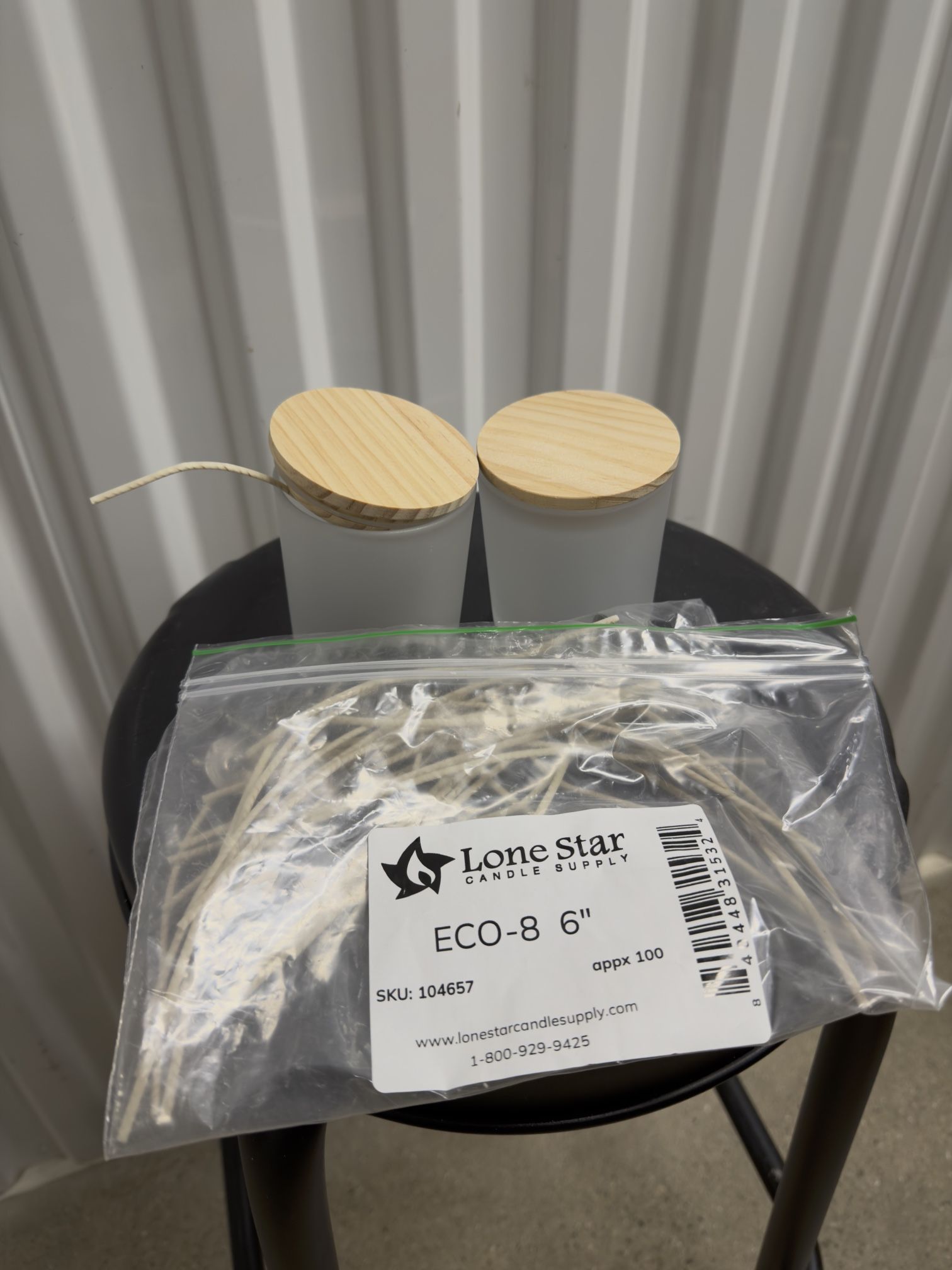 Frosted candle jars w/wicks (qty 32)- $60 Frosted candle jars w/o wicks (qty 15)-$25 Natural soy 125 (415) wax (qty 2)-$6 464-45 golden soy wax (35lb approx)-$100