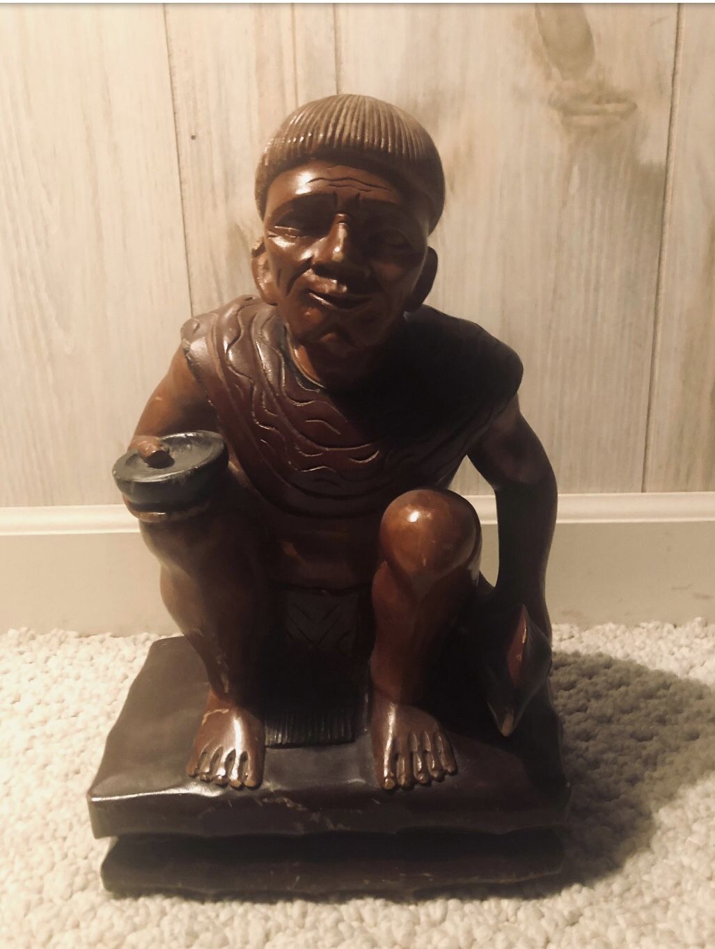 Unique Vintage Hand carved Solid Heavy Wooden Tribal Statue 8 X 6 X 14” H. GC.