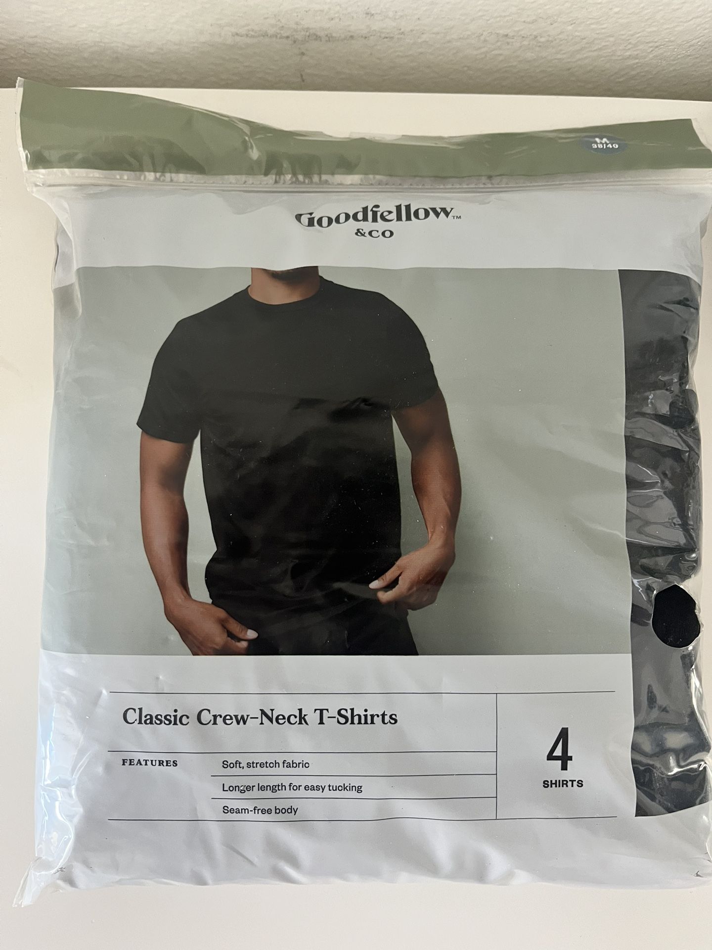 Unopened pack of 4 black T-Shirts by Goodfellow
