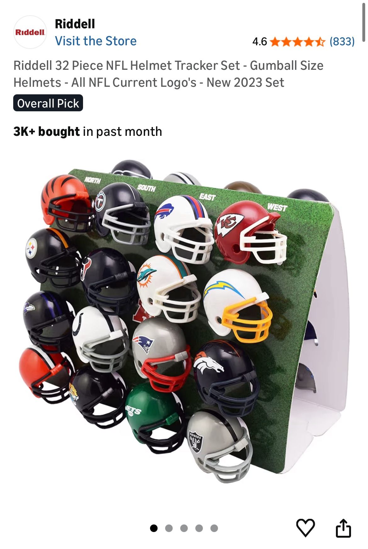 Cash only $10. Pick up in Dublin or San Ramon Mini size helmets with NFL logos. Full set of 32 helmets and paper stand included