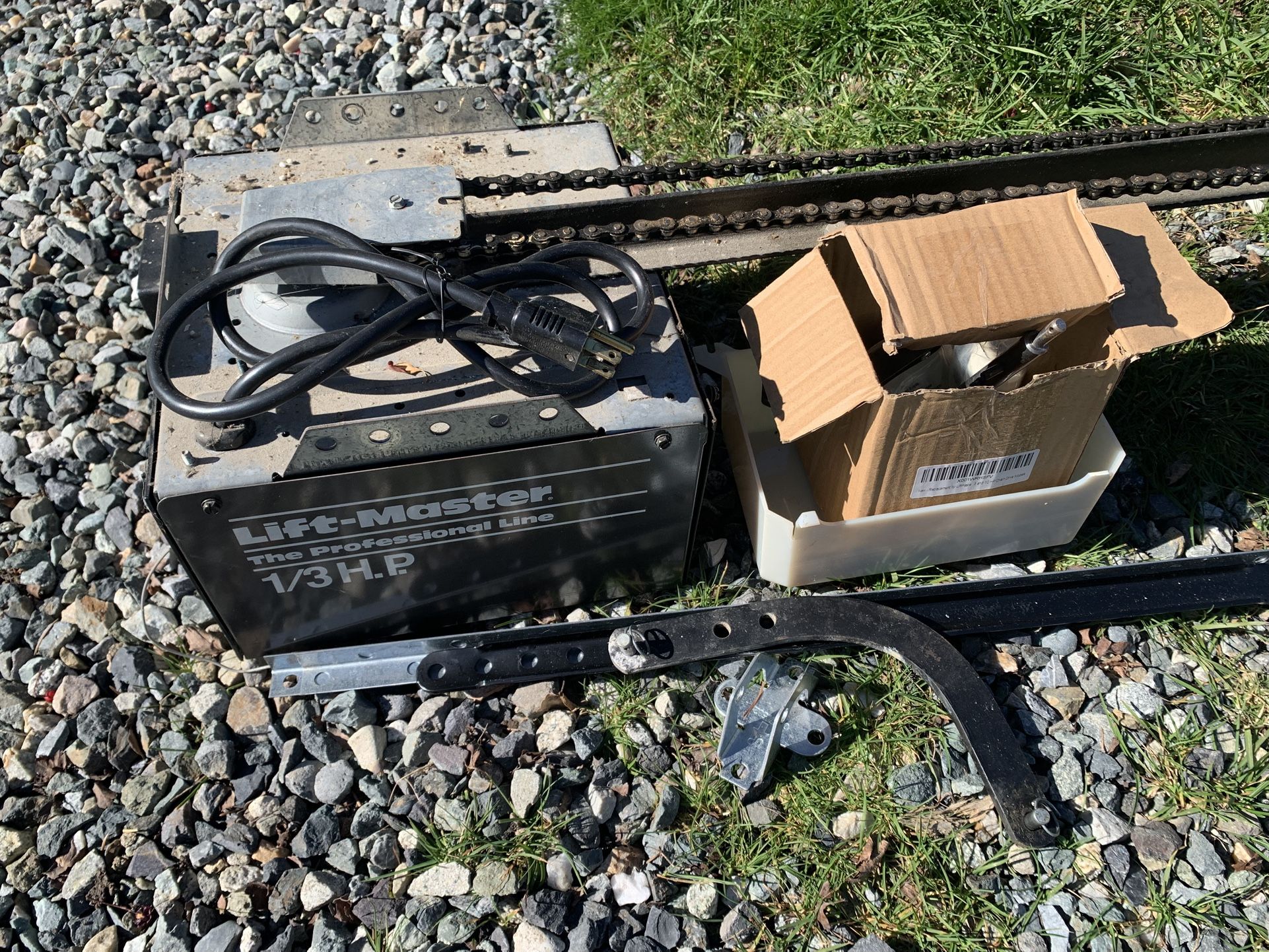 Used 1/3 HP Lift-Master garage door opener. Wireless remote no longer works, but otherwise works fine. Could also be good for parts.