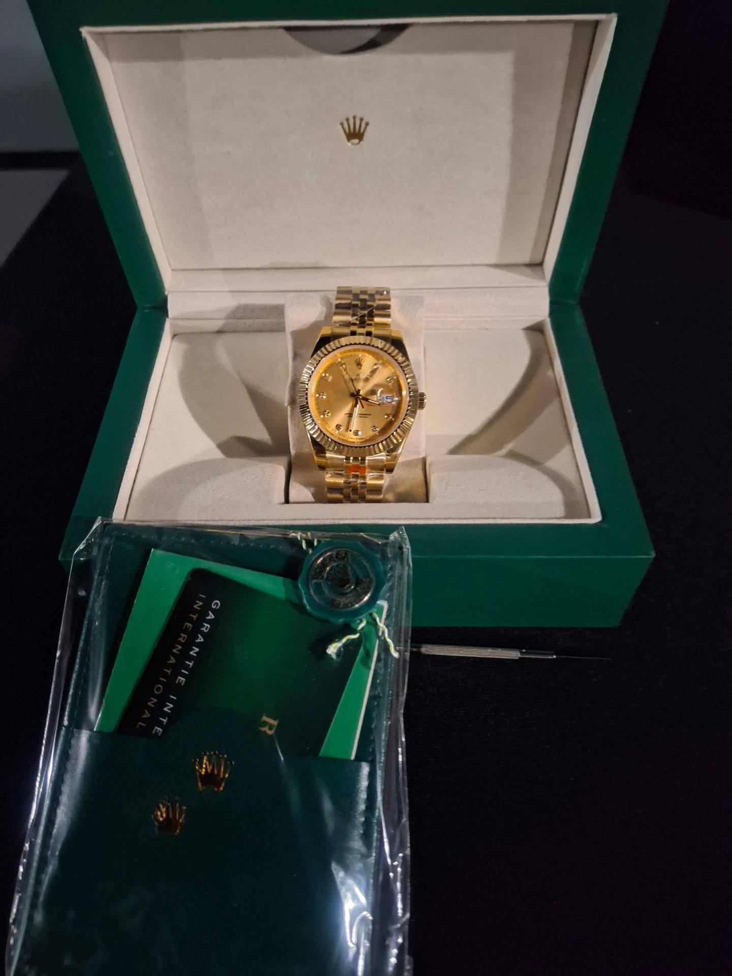 High-quality Rolex-style watch with a premium feel. Has a nice weight to it and a smooth sweep (no loud ticking). Great statement piece—looks clean on the wrist 🔥