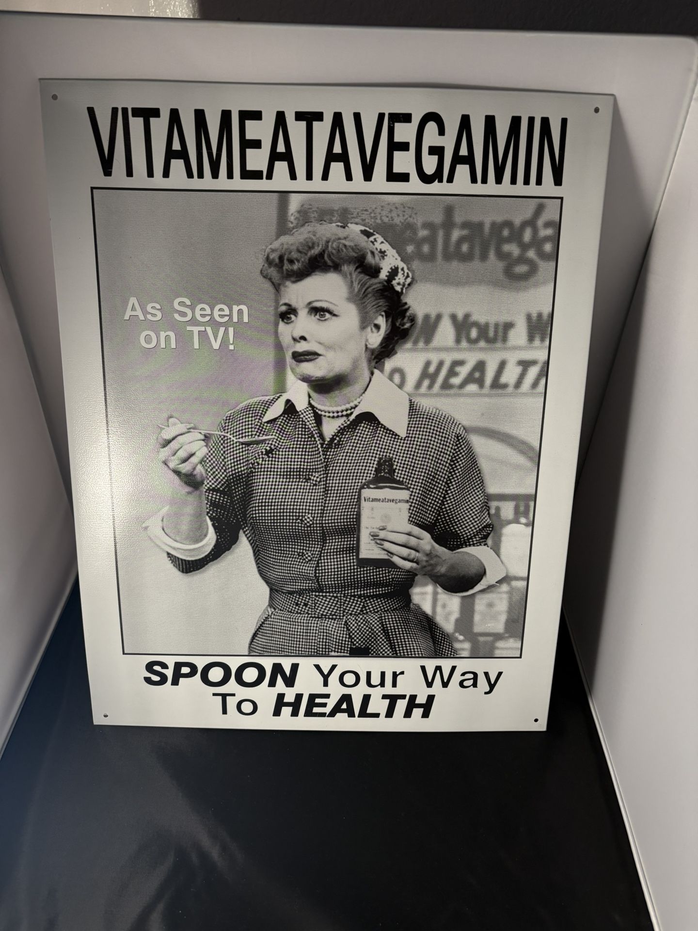 I Love Lucy Vitameatavegamin metal photo frame. Great condition. 16 wide x 12 1/2 wide