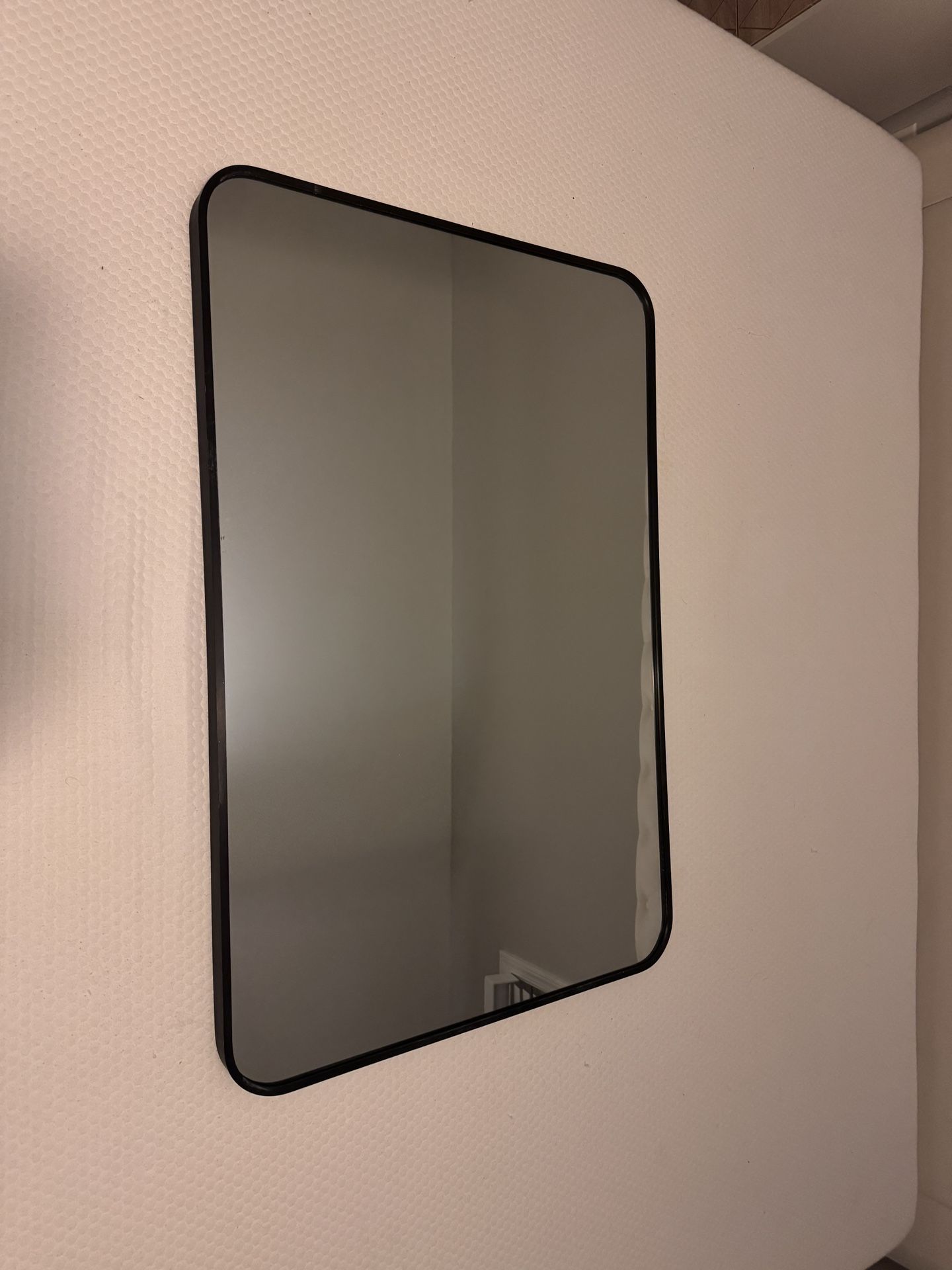 24” wall mirror that hasn’t been used. Description from Amazon : BEAUTYPEAK 24" x 36" Rectangular Aluminum Alloy Frame Wall Mounted Bathroom Mirror with Rounded Corners, Black