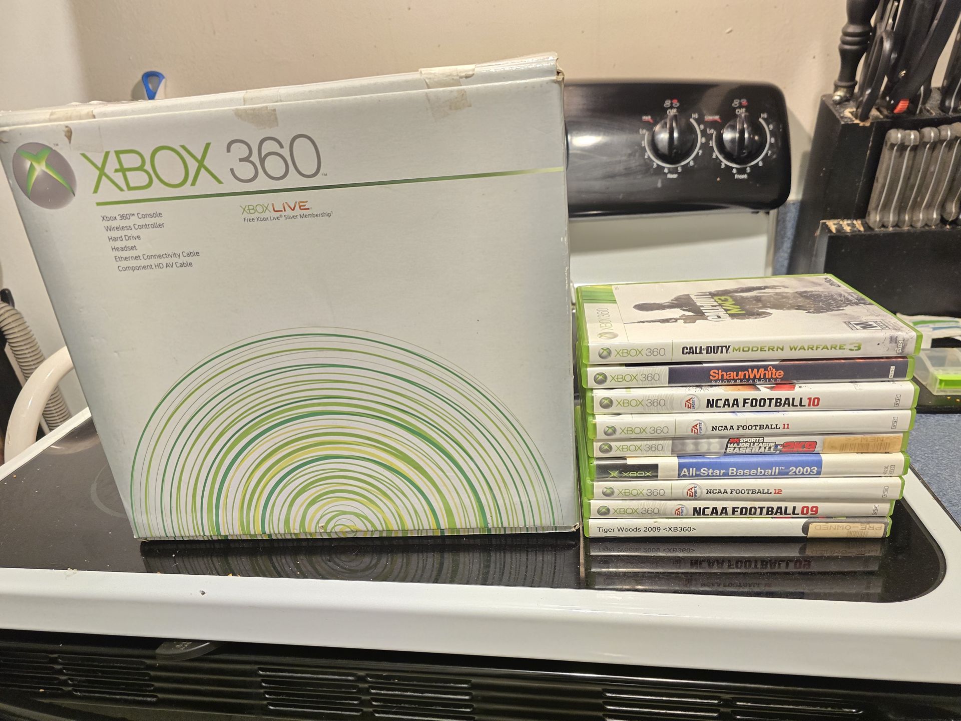 Xbox 360 IN BOX WITH GAMES HARD DRIVE AND CONTROLLERS