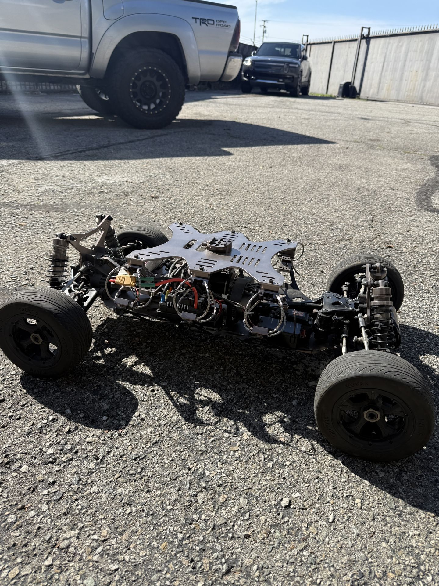 Used maybe once, super clean! ROFUN cinema camera rc car Width: 20” outer tire wall to outer tire wall Length: 31” Connects right away, and runs great. Comes with RC.