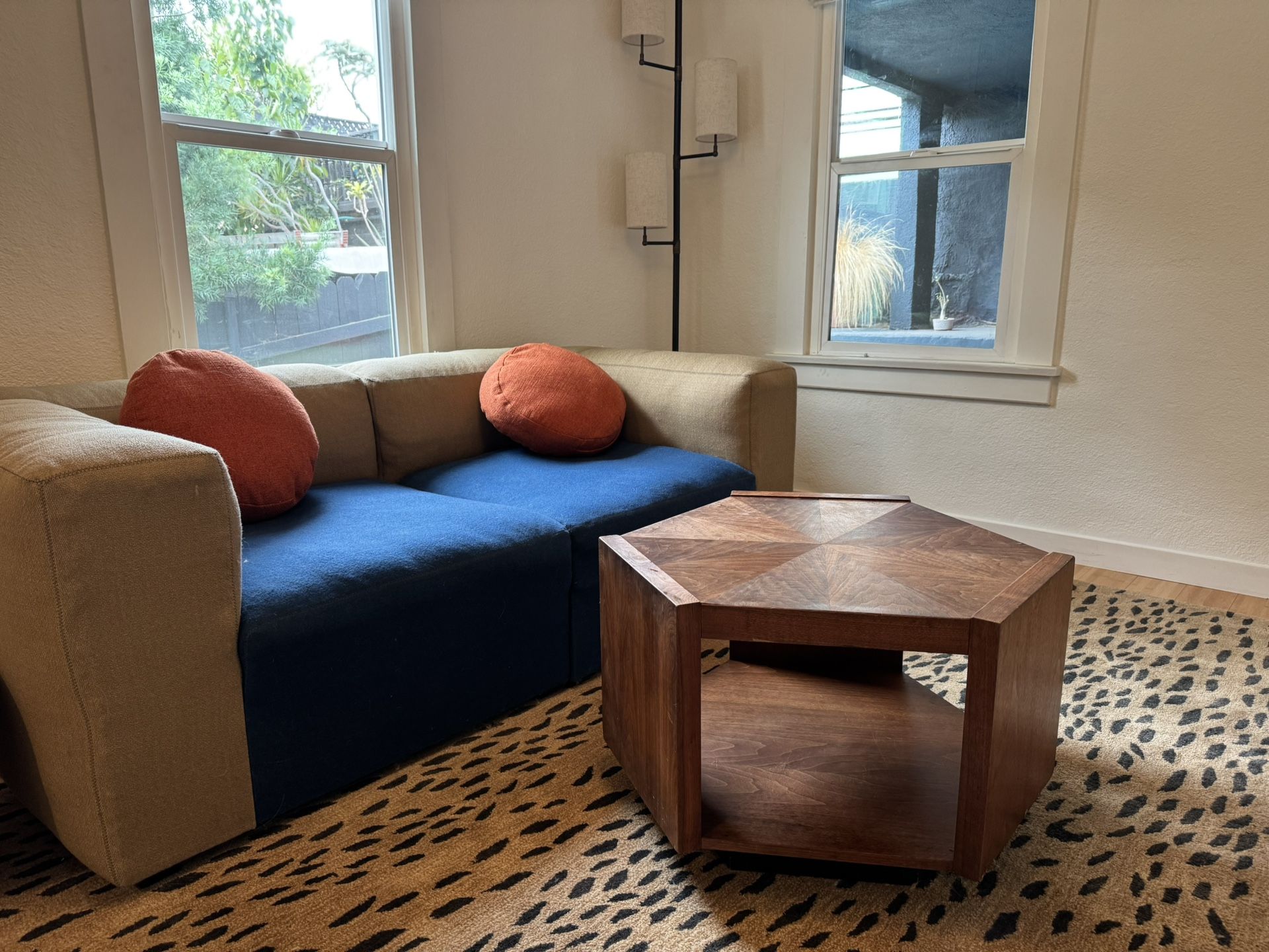 Selling my wood coffee table. It’s in decent shape with a few minor scuffs/scratches. The open lower shelf provides convenient storage for books or decor. (Also selling sofa)