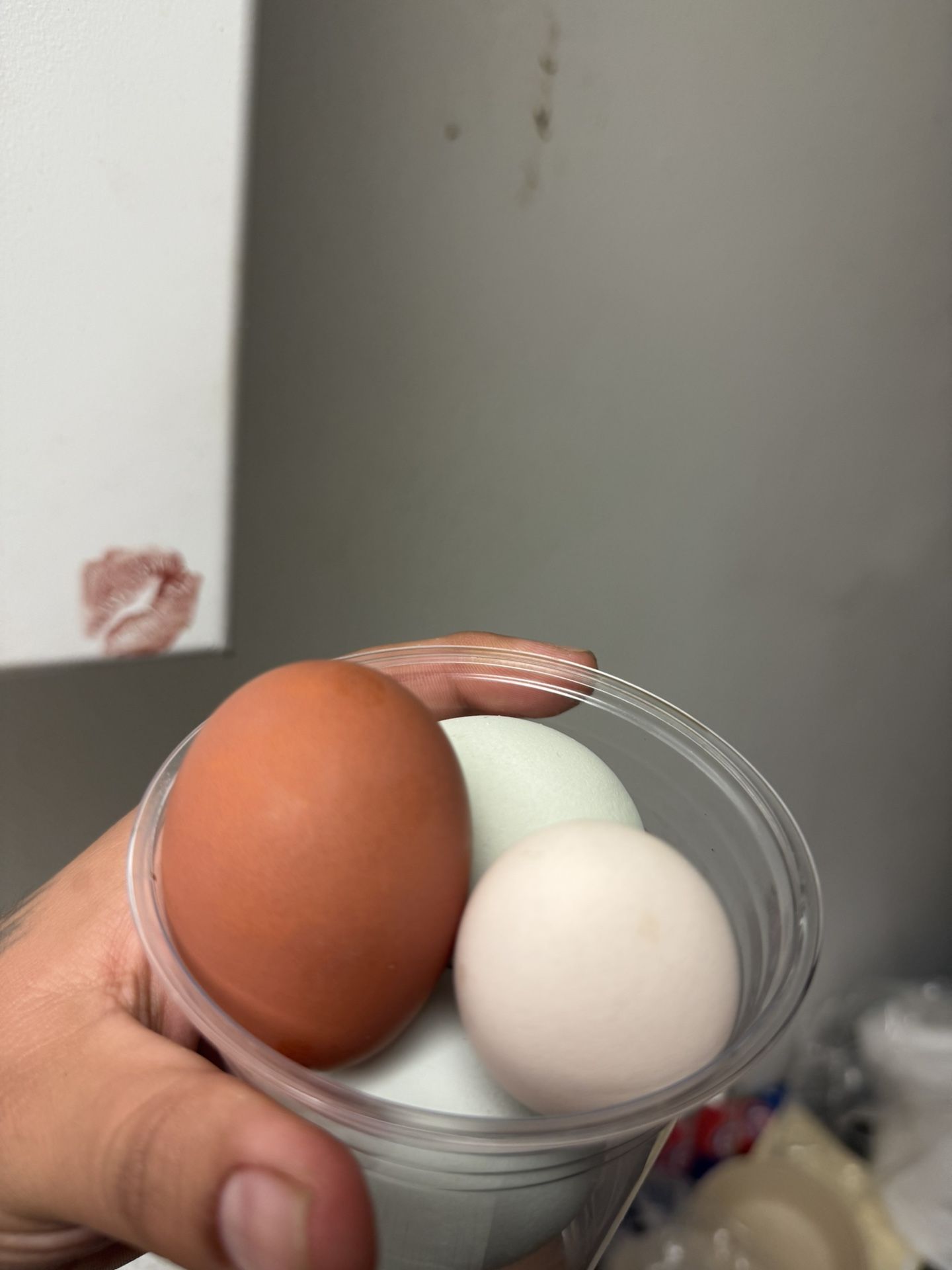 Fresh from my moms farm amazing yellow yolks $10 half dozen Blue eggs Dark brown Light colored brown