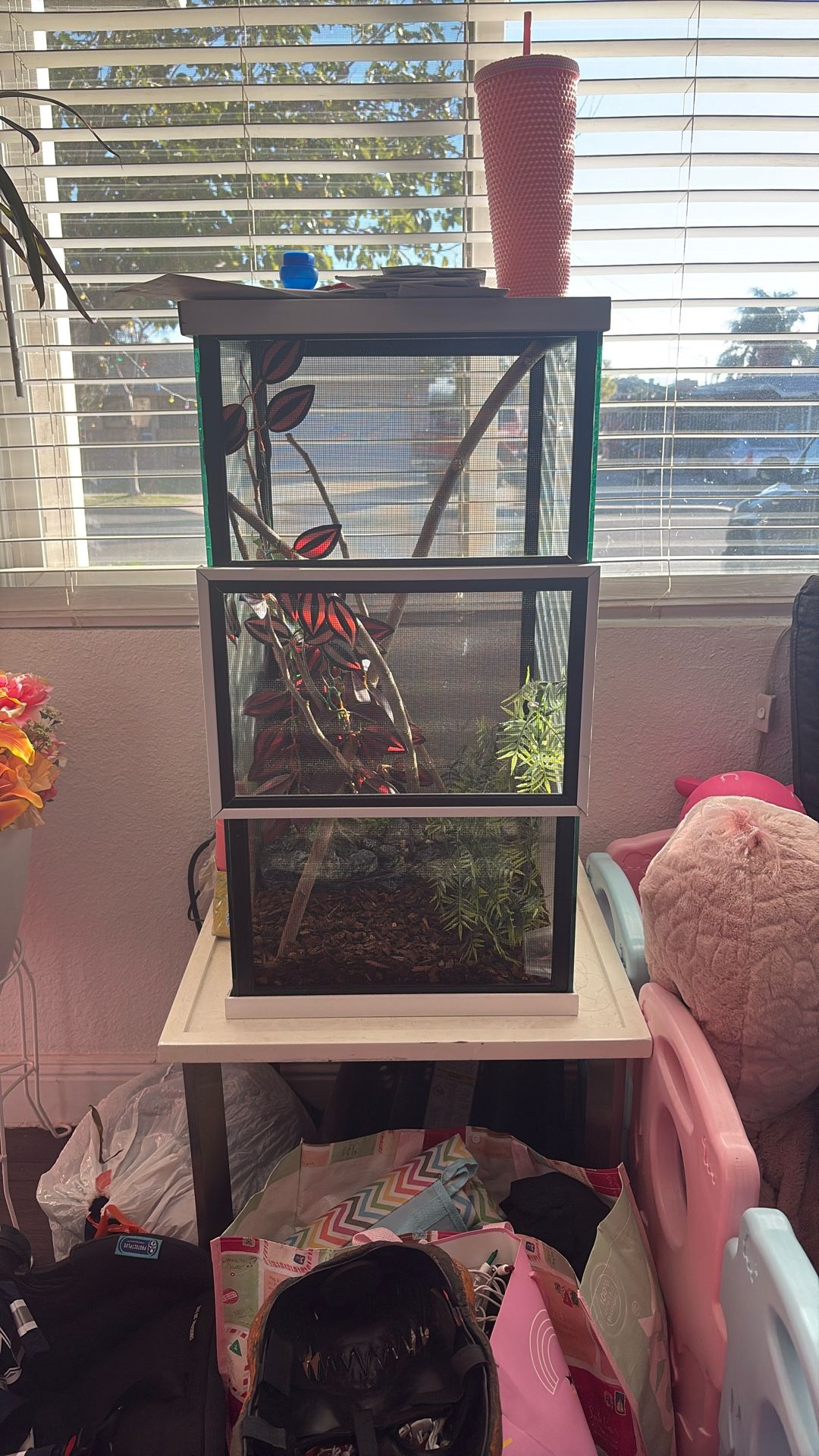 Previously used for a chameleon no longer need it had it only for four months had a brand new leaf dripper that you plug in and refill with water give me your best offer Ignore this Kids women’s Men’s Queen Home supplies Free purse Dog shoes