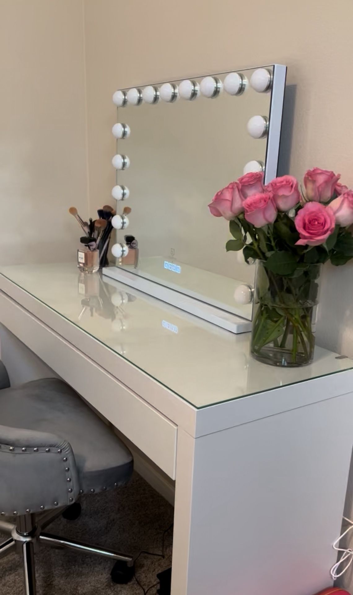 Used but like new, selling both the vanity and the mirror AS A SET. Its in perfect condition, no scratches, no dents, I took very great care of it. Only selling it so I can buy a bigger vanity. All light bulbs work never had to replace them