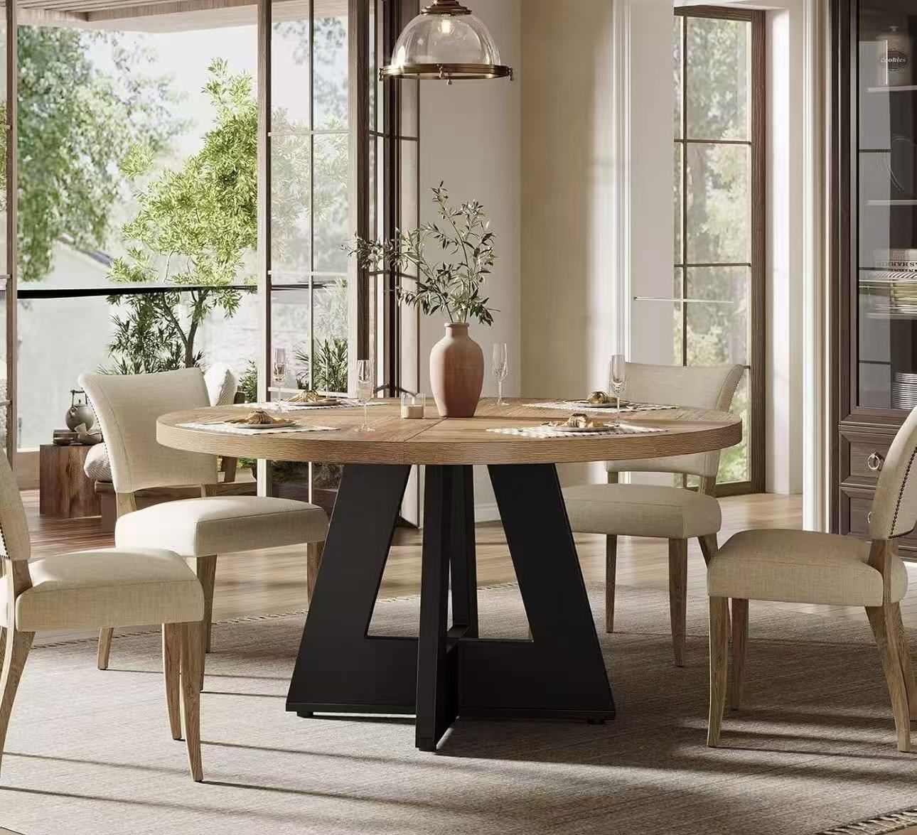 XK00823 47 inch Round Dining Table Wood Kitchen Table for Dining Room, 47" Dinner Room Tables for 4-6, Farmhouse Accent Furniture with Wooden Tabletop