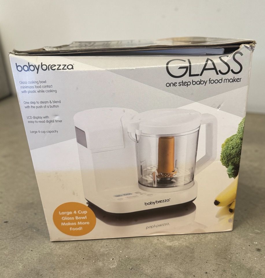 Baby Brezza Glass One Step Baby Food Maker brand new opened box to start putting it together and washing it before use. My babies started eating solids before I got to it. Baby Brezza Glass One Step Baby Food Maker brand new