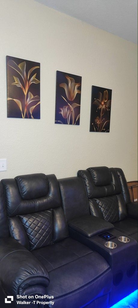 A beautiful custom stretched 3-piece Golden Flower Wall Art Canvas Painting is up for grabs. With its modern abstract design and neutral tones, it's perfect for adding a touch of elegance to any living space. Livingroom Bedroom & more.