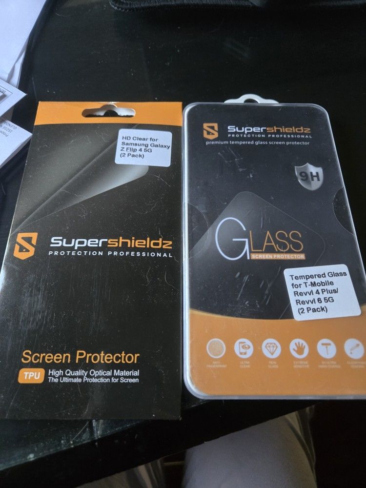 Glass protectors for cell phones for the ZFlip 4 5G (2pk) and tempered glass for the mobile Revvl 4 Plus/Revvl 6 5G (2pack) Price reflects $20 for each set