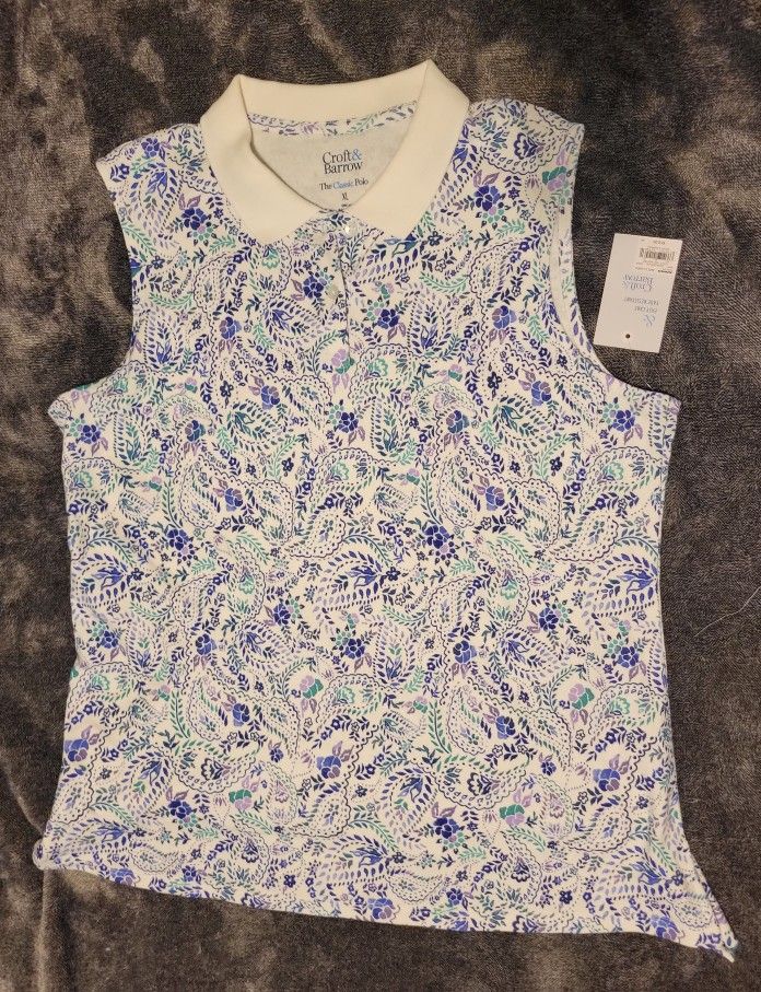 New with tags. Blue And White Sleeveless Tank Polo Blouse. Size xl. Croft & Barrow