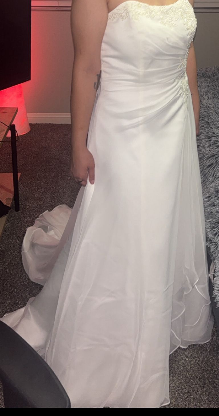 I have a white size 14 wedding dress that was purchased for my daughter and she decided to go with a different dress. This is size 14 white - strapless - ready to go!! $100 or Best Offer!! Pickup only!