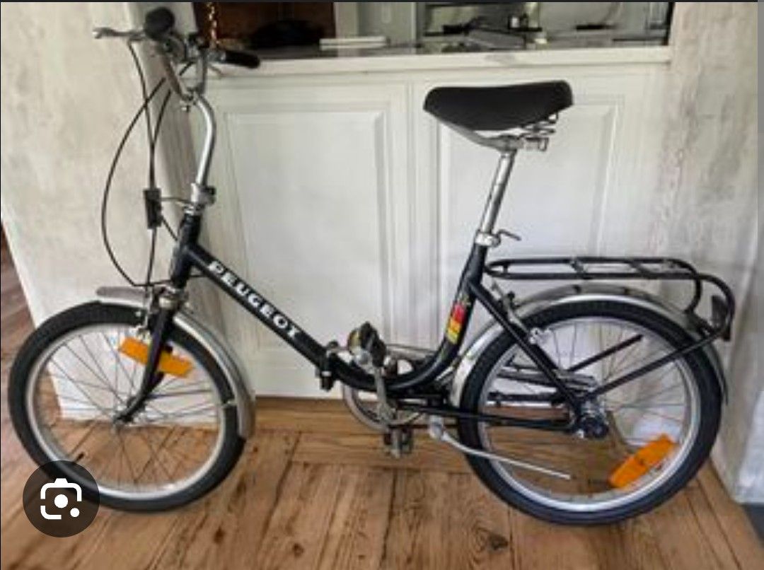 1980s vintage Peugeot folding bike. 3 speeds. 20in wheels. Works great. Nothing wrong with it.