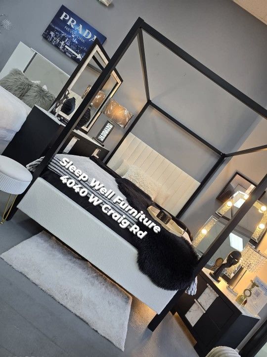 4pc Queen canopy design Bedroom set Bed frame, dresser, mirror, night stand 👉👉$999 👉NOW! Available in king 🙋♂️👉SLEEP WELL FURNITURE 4040 W CRAIG RD LAS VEGAS Open 10-7pm Hablamos Español 👉We offer Financing💲 Take home it Home 👉$50 DOWN No credit required, Zero interest up to 120 days Select from Koalofi, Acima, American First, Progressive finance. Furniture Sectional Sofa Queen King Mattress Bedroom Bunk beds Dining table sets