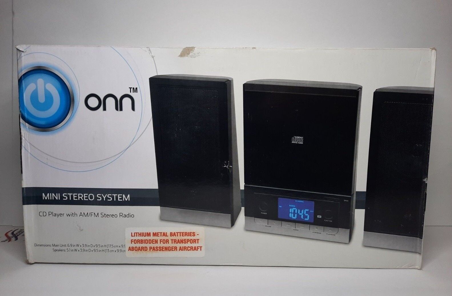 *Used/Like New, Great Condition, No Original Box* *Retail-$45* ONN BLK Mini Stereo System This mini stereo system has everything you need to listen to your music. It can play cd's, access the radio, and has in import so you can connect your MP3 or other audio devices. It comes with as well, so you can change the settings with ease.