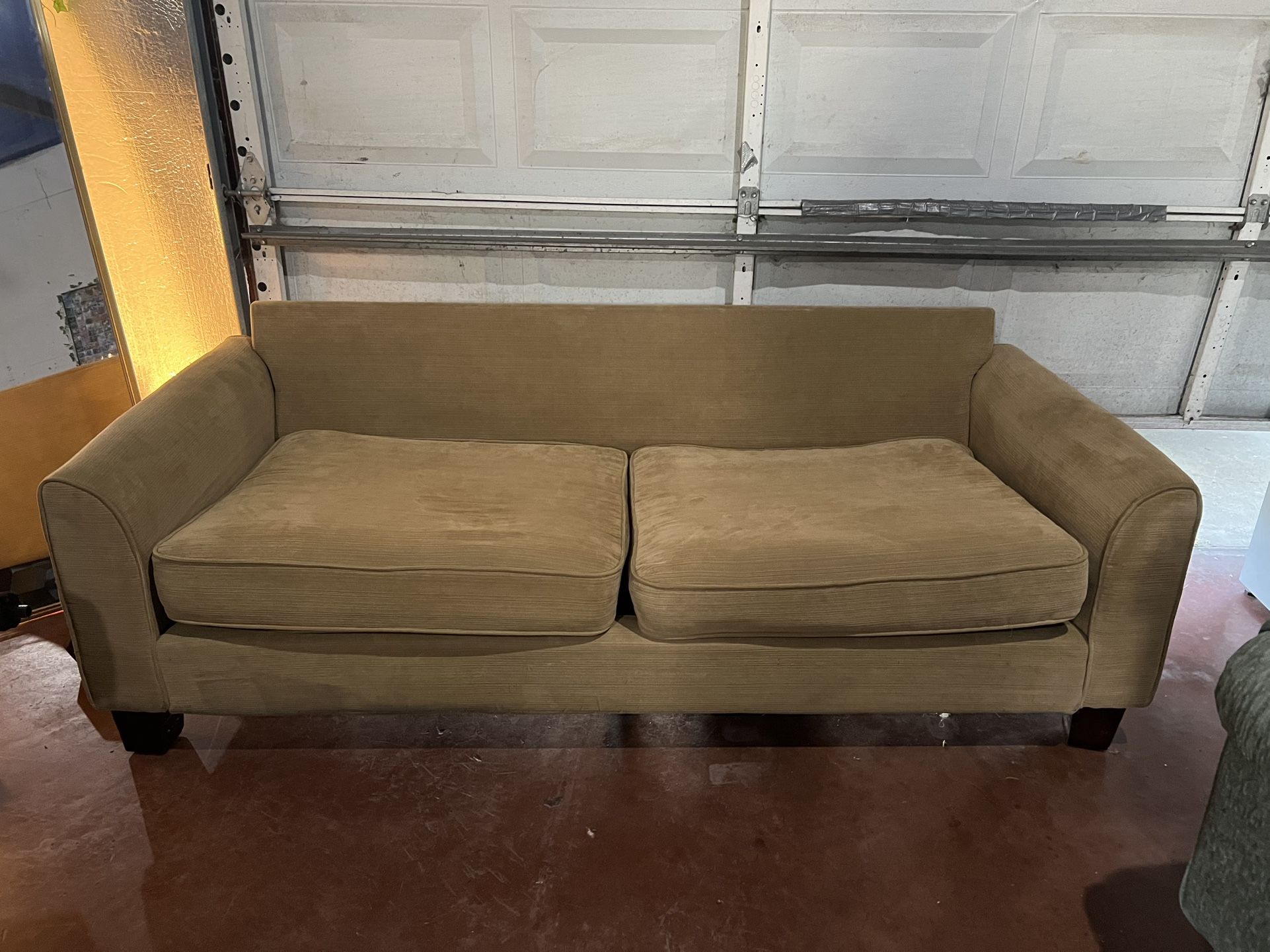 Selling a comfortable 2-seat couch in good condition. Very sturdy and supportive. Fabric is clean with normal wear from use. Great for an apartment, office, garage, or extra room. Pickup only. Message me if interested. OBO ask me questions!
