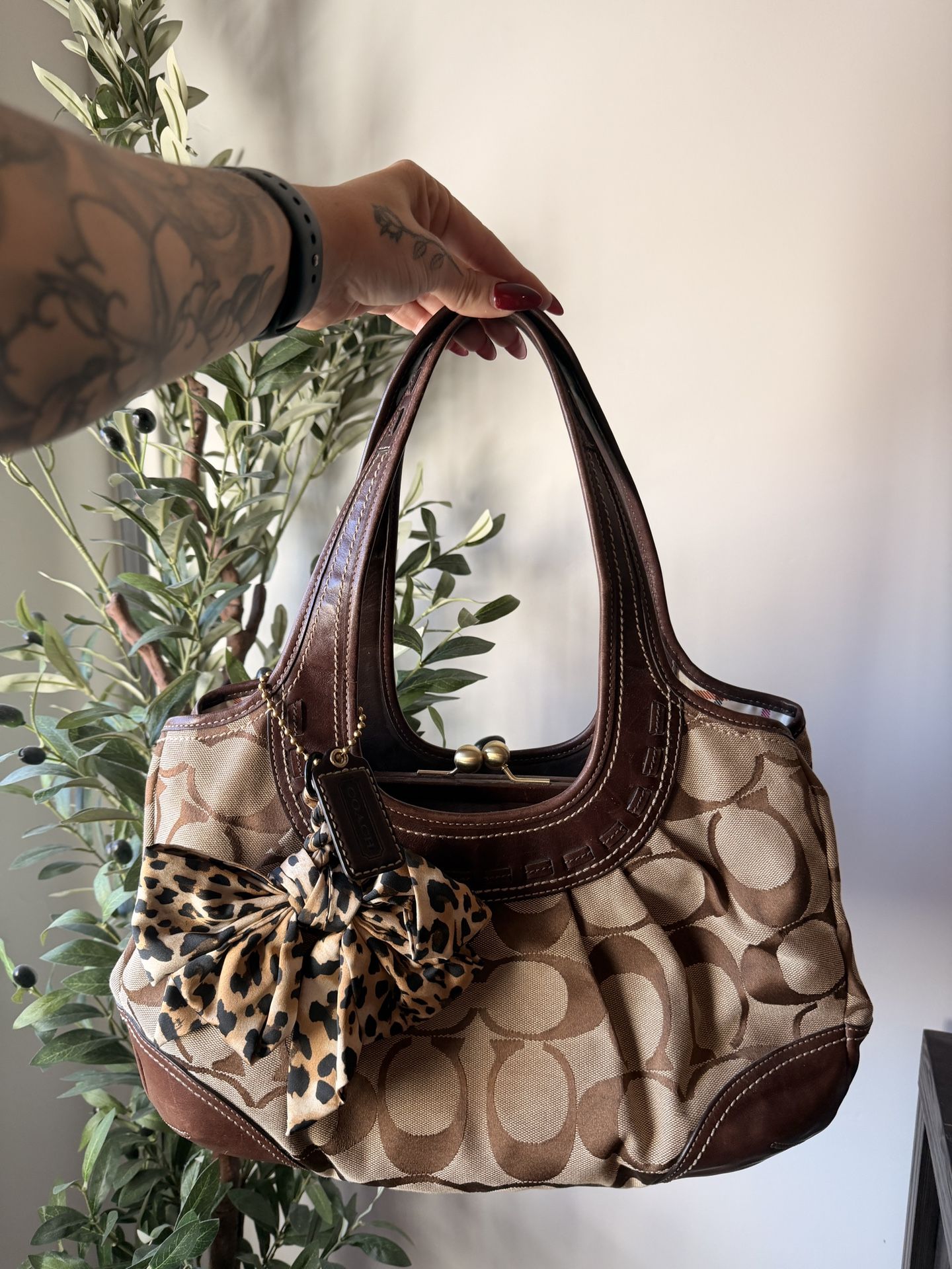 🤎 Vintage Coach Signature Ergo Bag 🤎 Brown monogram canvas with leather trim Authentic vintage Coach Signature Ergo purse from the early 2000s. A timeless silhouette with a relaxed, structured shape that works effortlessly for everyday wear. Features Coach’s classic brown signature canvas, rich leather trim, and gold-tone hardware. Details • Authentic vintage Coach • Signature Ergo style • Early 2000s (Y2K era) • Brown signature canvas with leather trim • Gold-tone hardware • Comfortable shoulder strap • Kisslock closure with snap • Spacious interior with zip pocket • Signature Coach plaid lining Condition Pre-loved vintage condition Light wear consistent with age (please review photos) No major flaws A versatile, elevated piece that pairs well with both casual and dressed-up looks. Clean, classic, and increasingly hard to find.