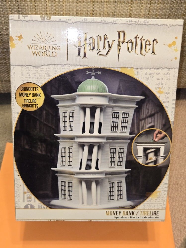 Harry Potter Gringotts Bank Insert Coins at the Top in the Slot Watch your Money Slide Down the Rails to the "Vault" See Through Panel on Backside Well Designed & Detailed Crafted Nicely Quality Resin New in Box Never Been Used Smoke and Animal Free Home **CHECK OUT MY OTHER LISTINGS FOR BUNDLING PRICING**