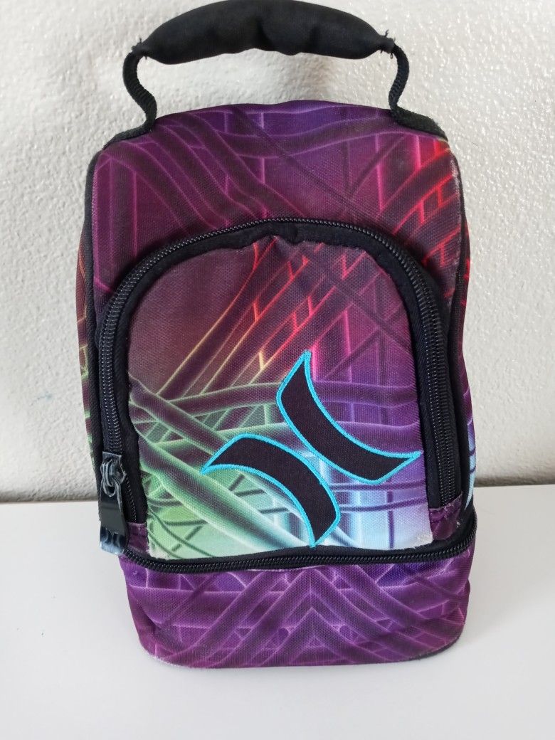 Hurley insulated lunch bag with two compartments. 11x6