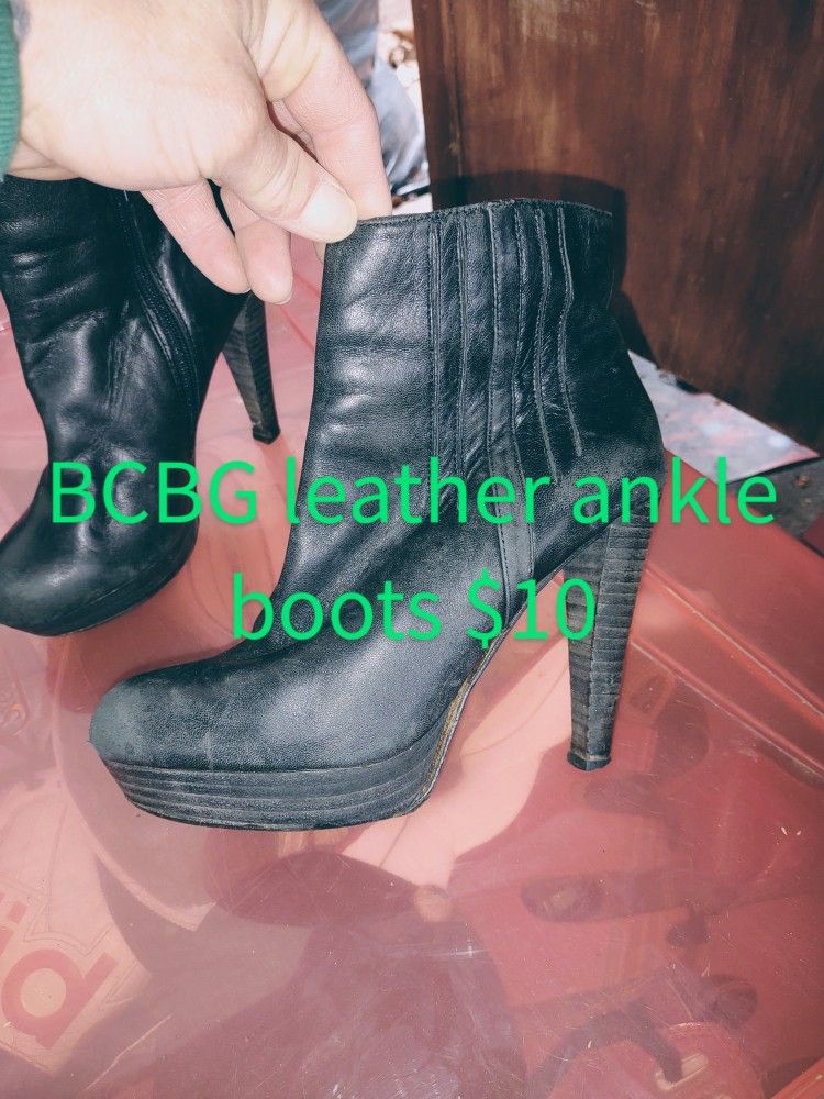 Black Leather BCBG ankle boots. Super cute on they zip up on inside leg of boot. Asking $10