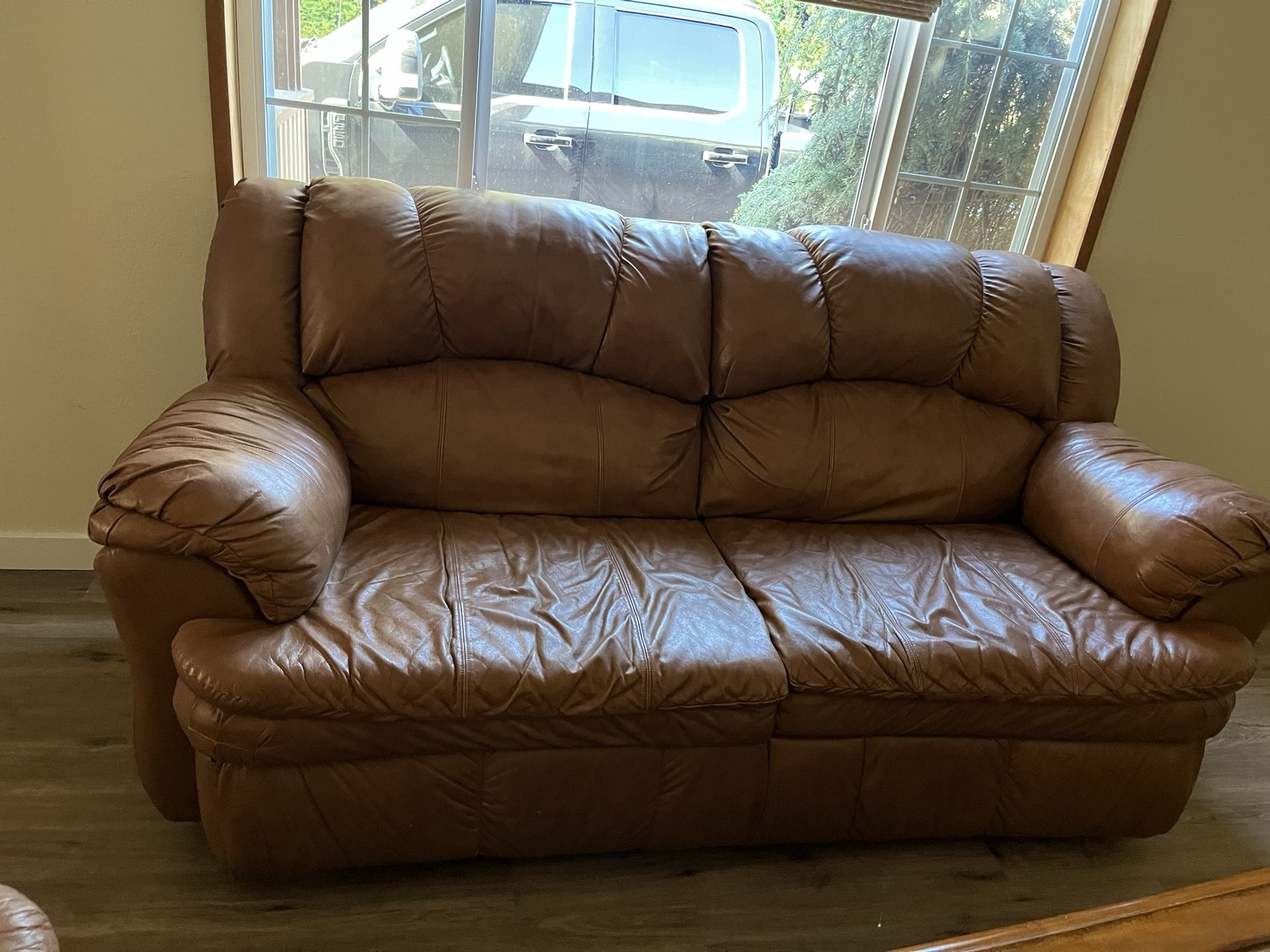 2 Leather Matching Couches And 1 Matching Love Seat