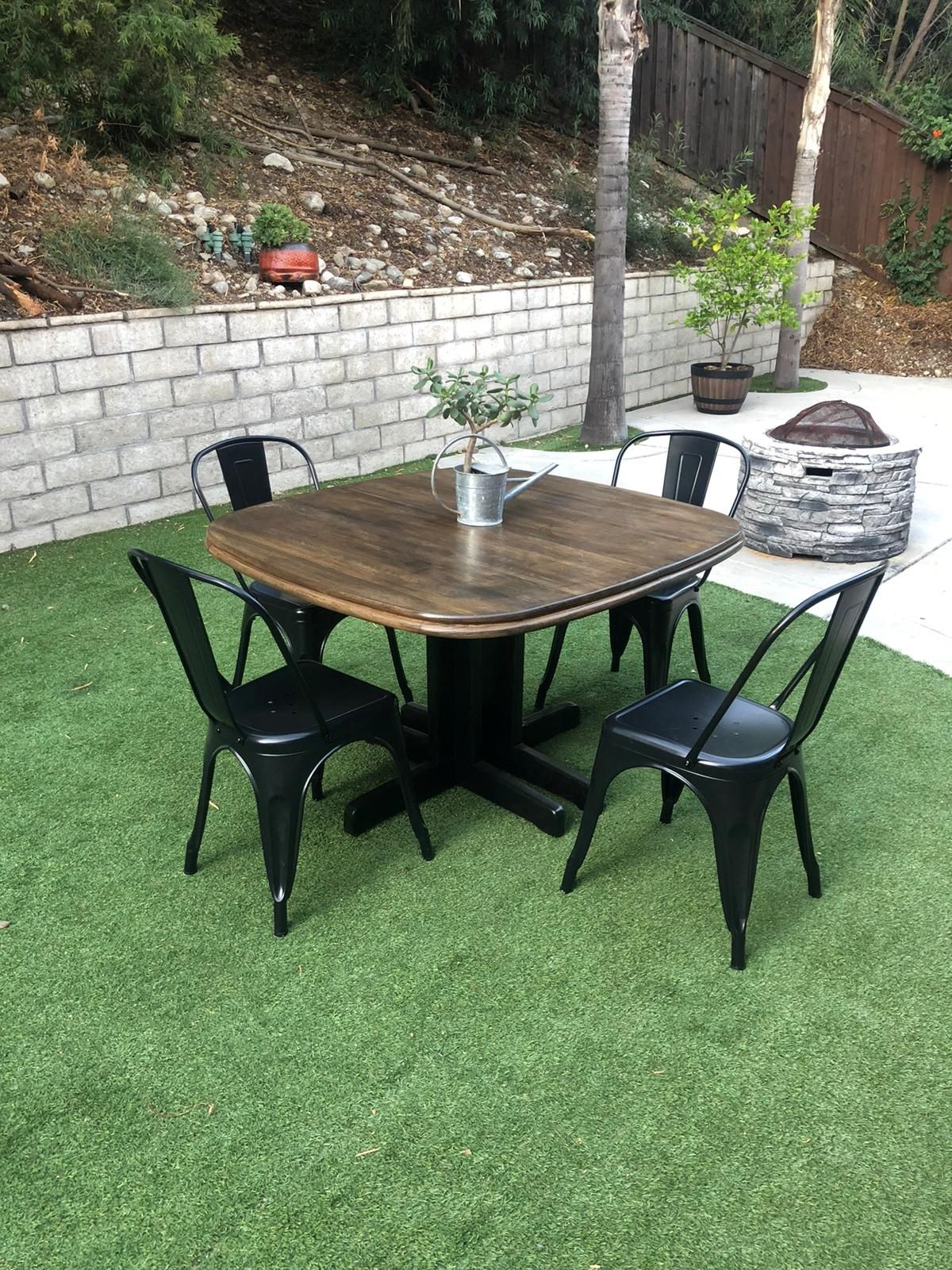 Solid wood dining table with two convenient ext ensions, perfect for hosting gatherings. Comes with four matching chairs. Timeless design, excellent condition. Ideal for both everyday meals and entertaining guests. Don't miss out on this versatile and stylish dining solution!"