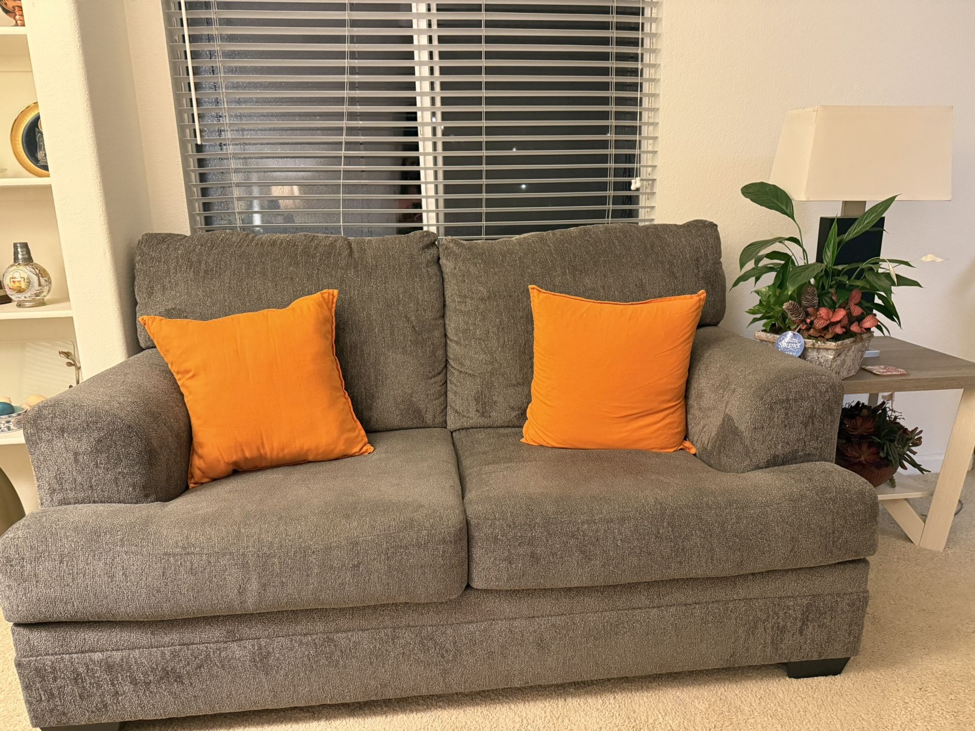 This furniture has been used very little and is in very good condition, like new, and has lots of colorful cushions.
