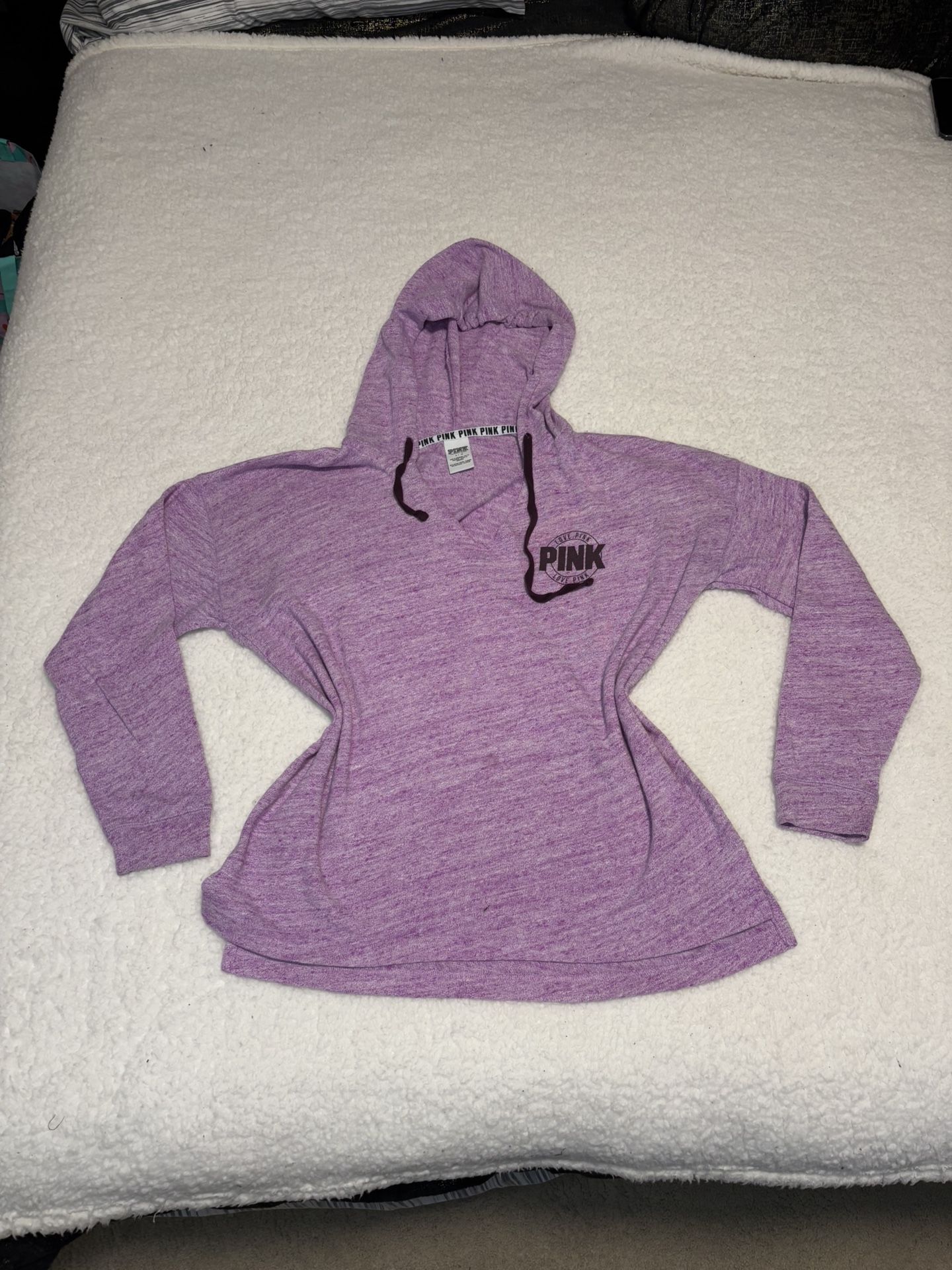 Gently used - VS PINK Women Purple Pullover Hoodie V-neck Oversized fit Lightweight Women size L
