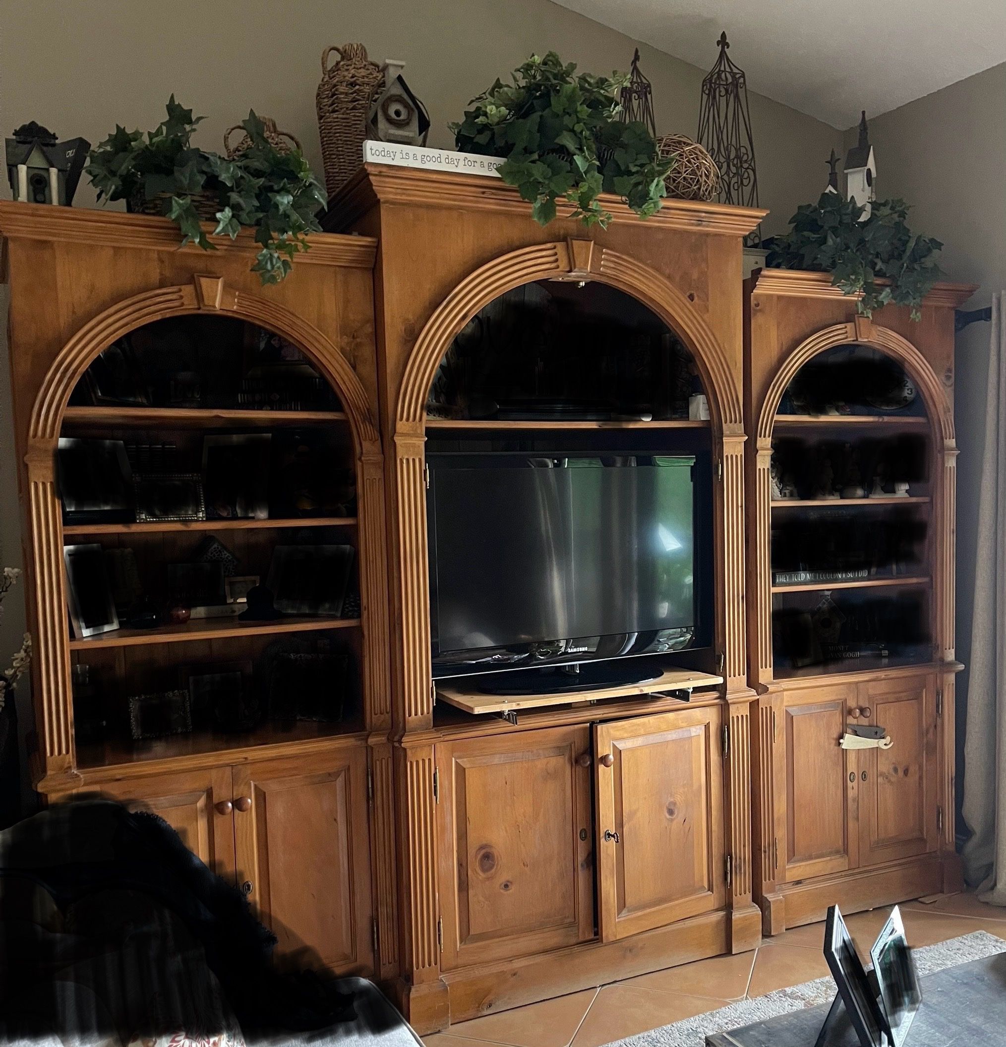 Pine Wall Unit/Entertainment Center With Lots Of Storage Space-Solid Wood