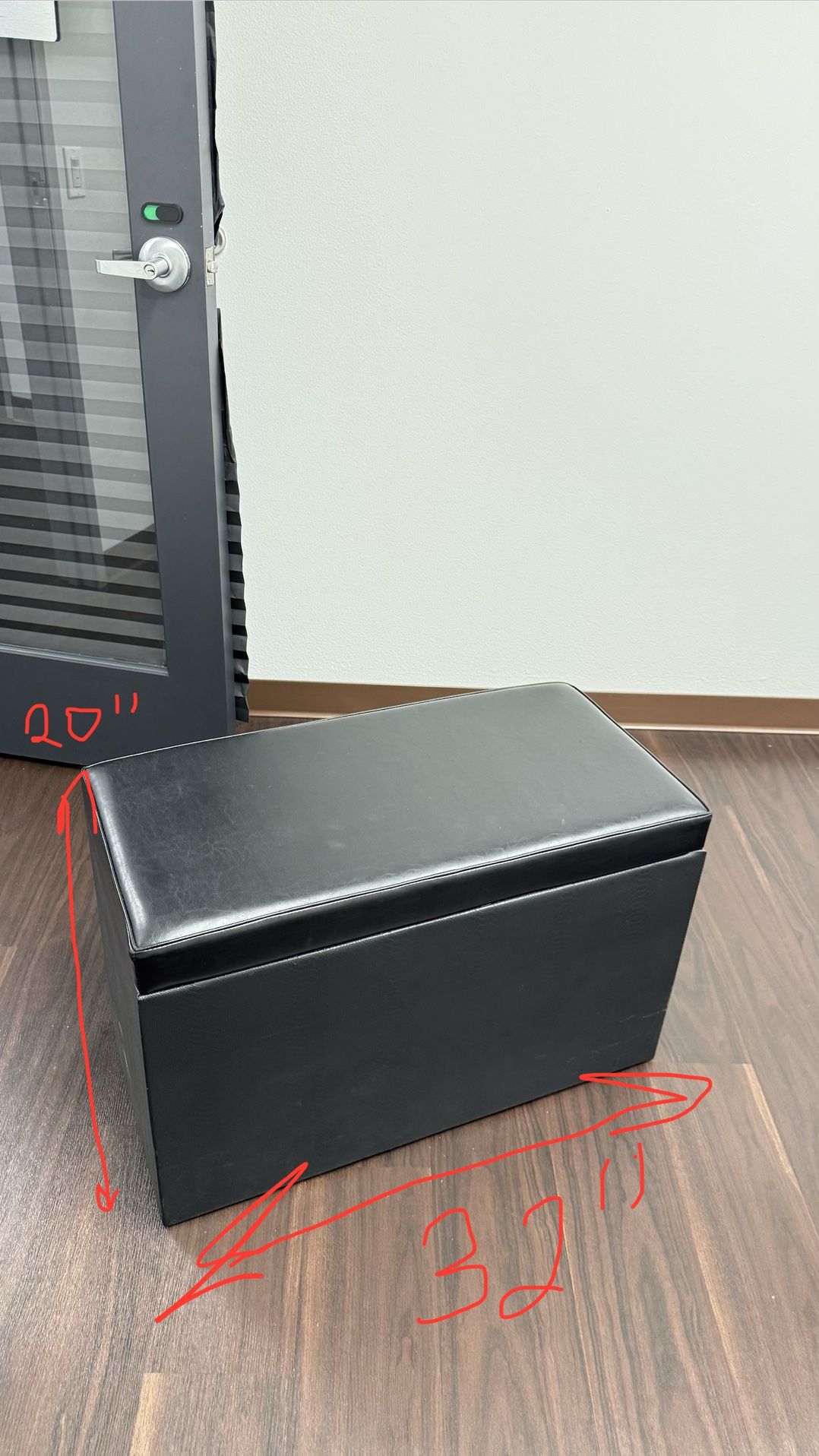 Selling two black storage ottomans with lift-up lids. Perfect for extra seating and hidden storage in living room, bedroom, office, or spa. Dimensions: • Small ottoman: cube style • Large ottoman: 32” length x 20” height Features: • Soft padded seat • Lift-up lid with large hidden storage space • Durable faux leather material • Lightweight and easy to move • Great for blankets, towels, clothes, or general storage Both are in very good condition. ⚠️ Selling both together only. Price: $45 for both