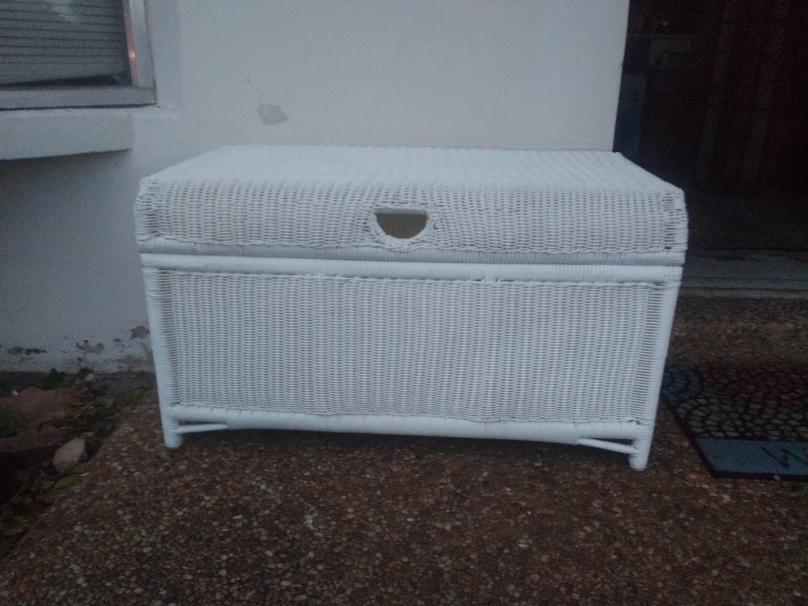 Wexler Wicker Trunk in white. Sturdy and well made, yet light weight. 3feet wide, 20 inches deep Free delivery!!!