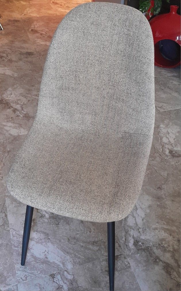 Set of 4 modern and comfy dining chairs. I bought these and my husband ordered leather instead. Priced to sell.