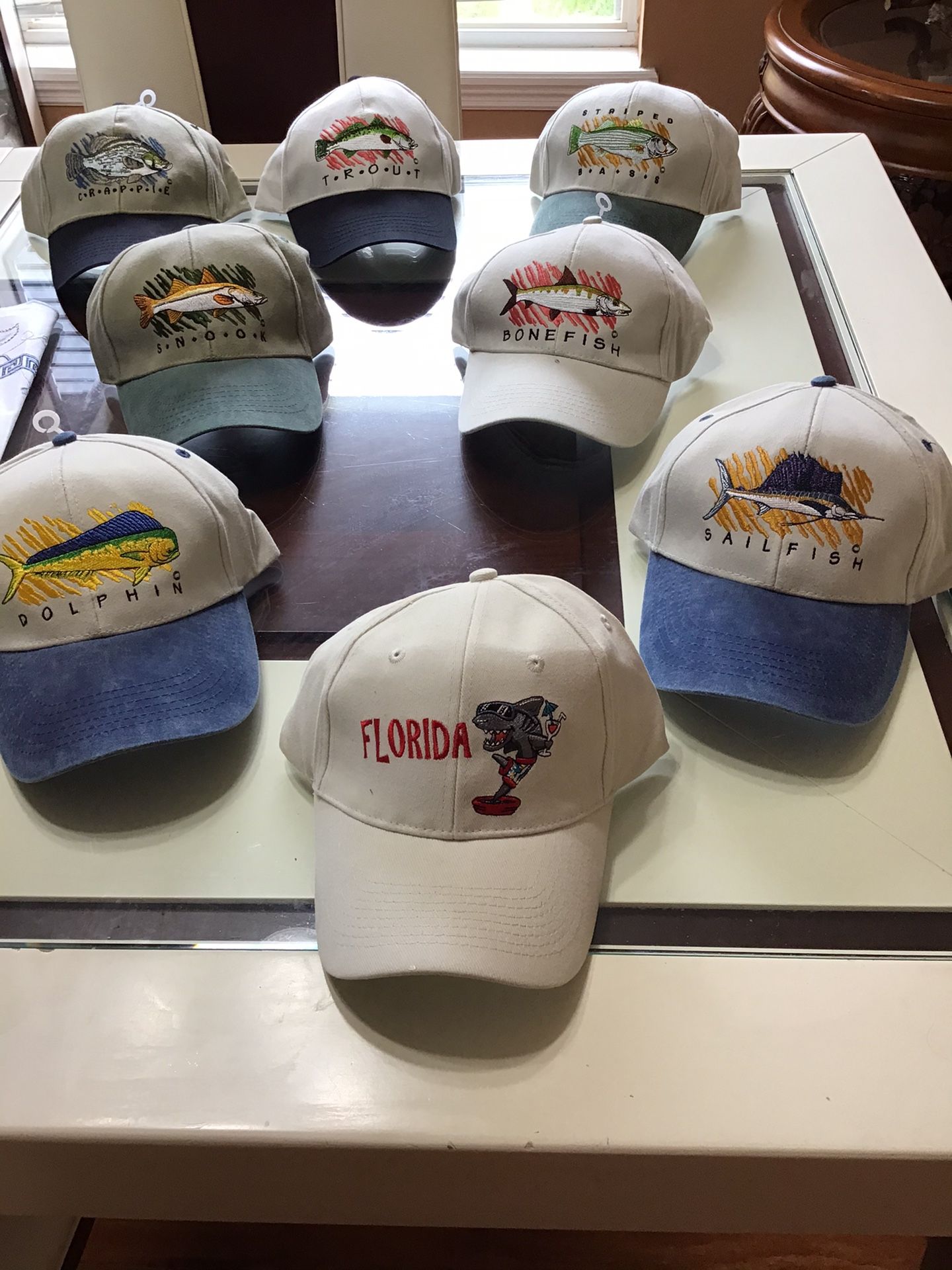 8 NEW EMBROIDERED FISHING ADJUSTABLE NEW H A T S NEW WITH TAGS 7 ADJUSTABLE ONE SIZE FITS ALL MADE IN HONG KONG FLORIDA HAT IS ONLY ONE FITTED SIZE L-XL HATS ARE WELL DESIGNED 100% COTTON IF YOU WANT TO PURCHASE INDIVIDUAL ARE 17.00 a piece plus 3:29 shipping ONLY SERIOUS BUYERS