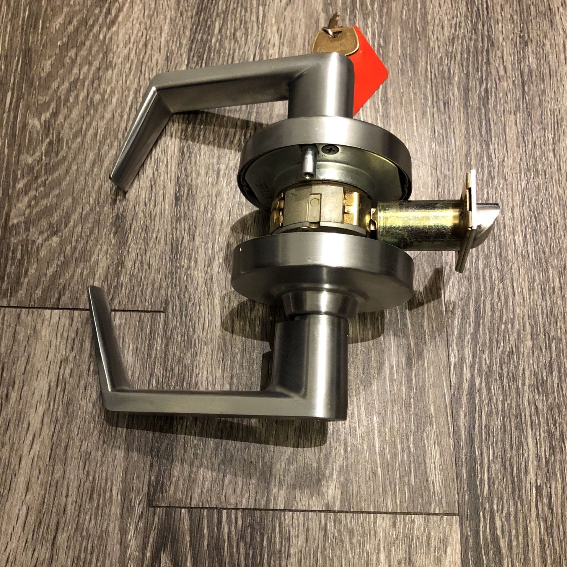 Gently used, in working order heavy duty door lock. Will not work without key on either side, must enter key and turn it to unlock. After key is removed the lever remains locked. All corresponding parts included. Will meet in Allen at the intersection of Bethany and 75 If the ad is still showing the lock is still available! Thank you for looking.