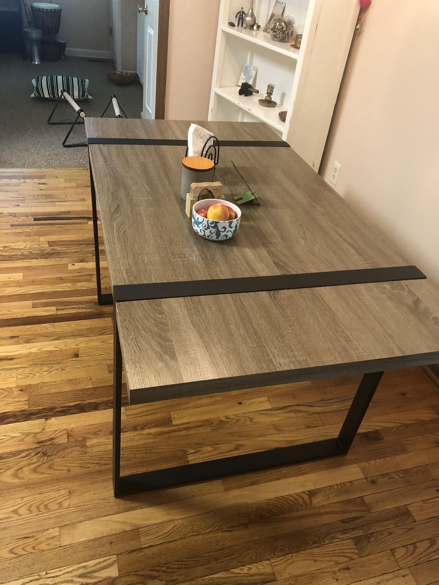 Walker Edison Furniture Company Industrial Metal Wood Rectangle Kitchen Dining Room Table, Driftwood