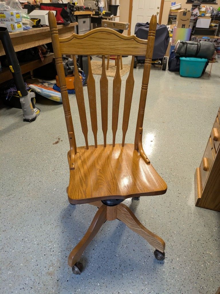 Solid Oak Rolling Desk Chair