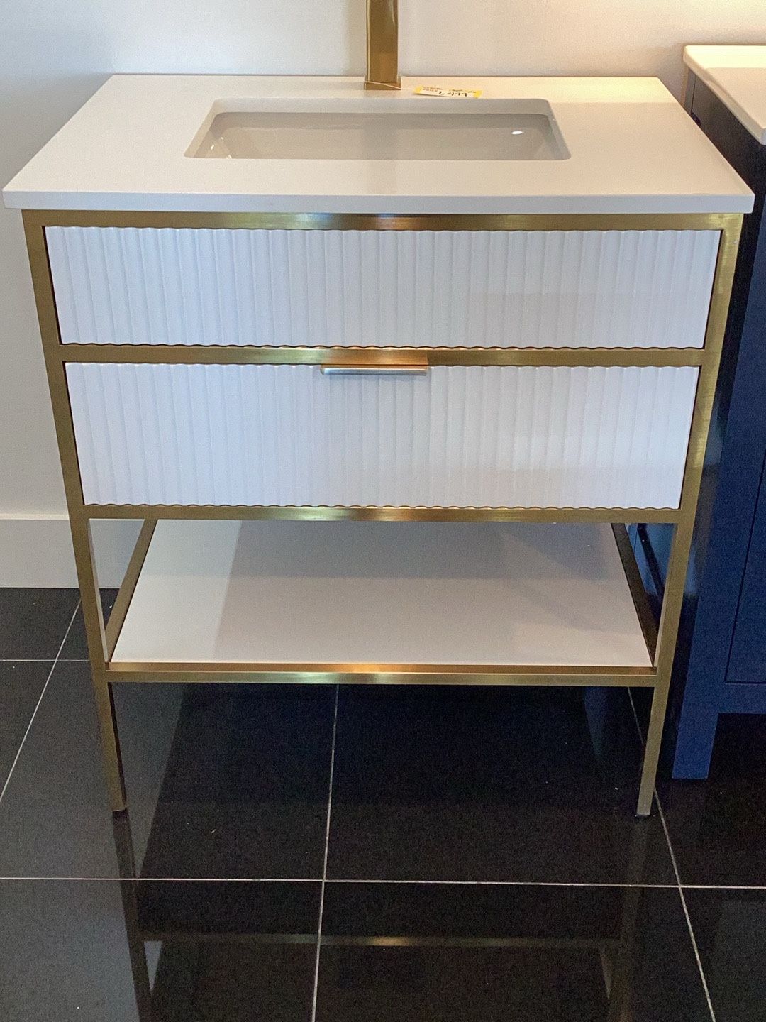 30” Bathroom Vanity Cabinet Gold Frame Solid Wood Quartz Top Ready For Pick Up