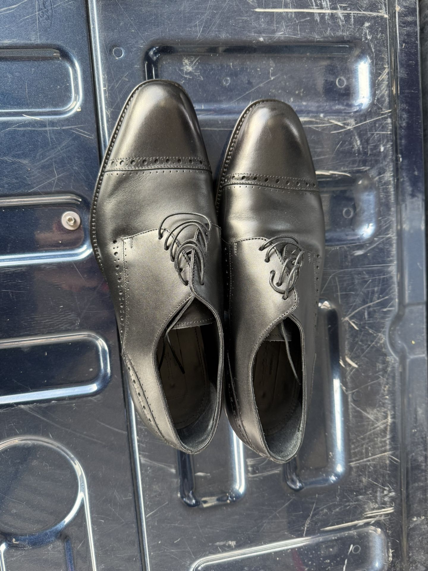 Ermenegildo Zegna Men’s Black Cap-Toe Oxford Dress Shoes – Size 8 US – Made in Italy