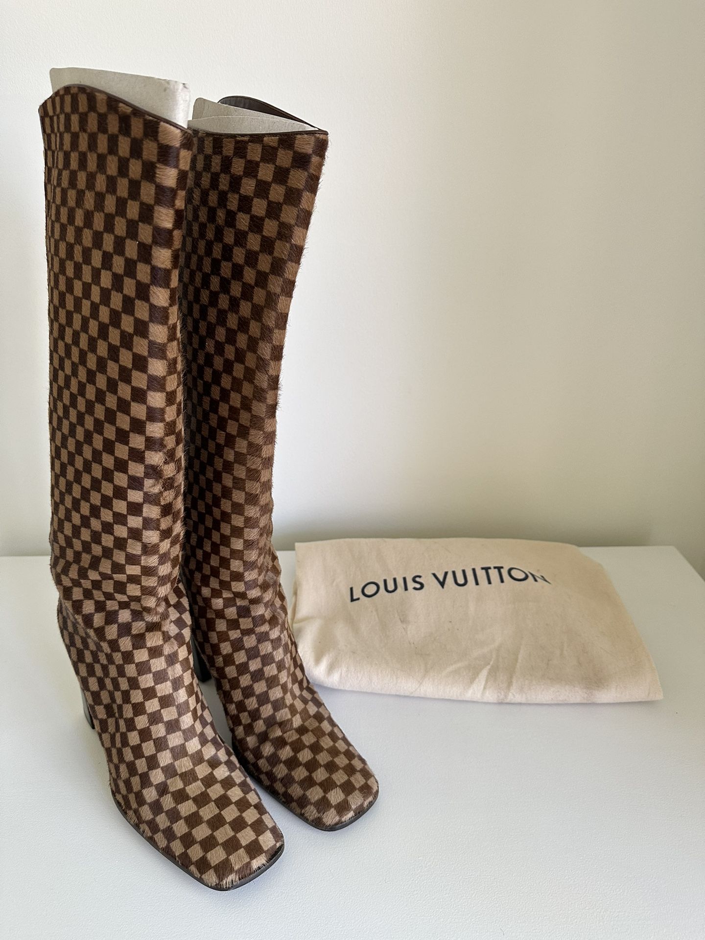Louis Vuitton Damier Calf Hair Leather Knee High Boots