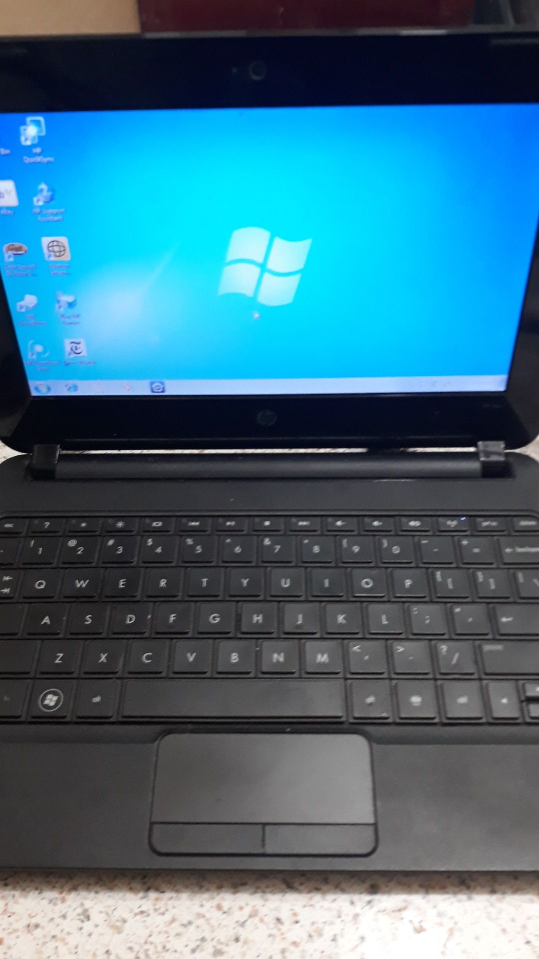 HP mini laptop with windows 7 installed, reset back to factory out of box. Just got a brand new charger off Amazon. Works great only issue is now it will only hold a short charge, so might need a new battery but if you keep it plugged in its fine... asking $50