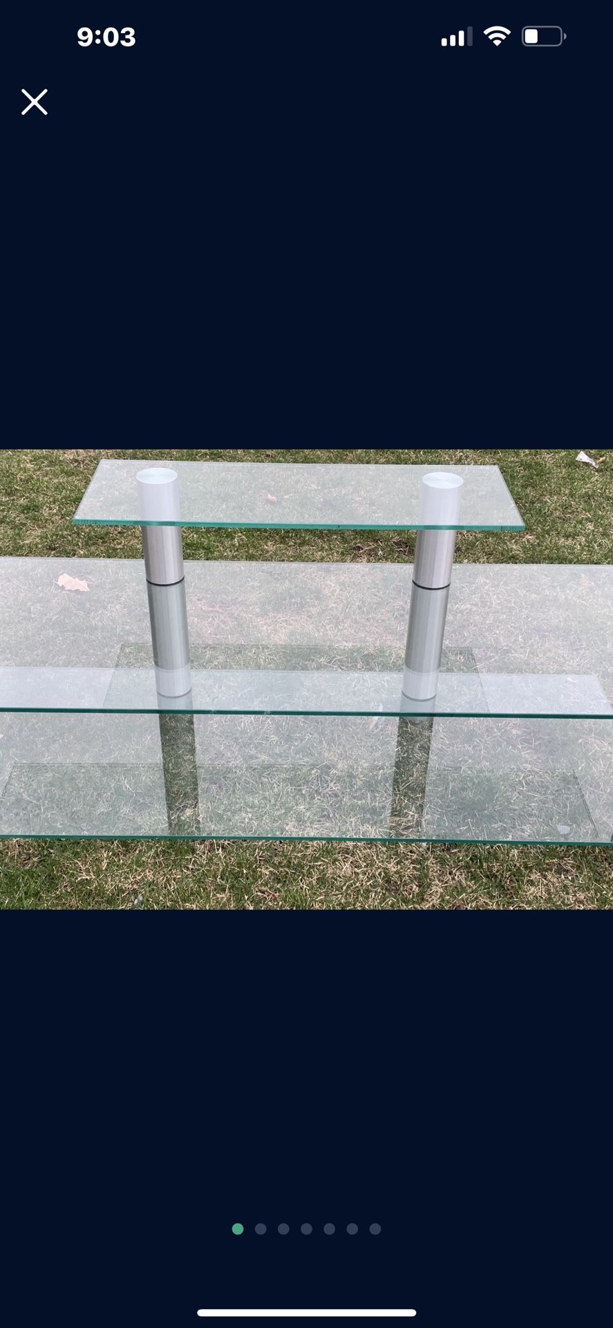 Very unique Spectral TV stand/coffee table. If you are familiar with the Spectral name, you know your getting a top of the line piece of furniture that start at around $900 or more. Spectral Smart Furniture. Smart Home. For over two decades, Spectral Furniture has been at the forefront of developing bespoke, beautiful stands for the home. With a number of ranges to choose from, each range can be adapted according to your preference. Wood, gloss or satin glass finishes are available. On top of this, select from up to 2000 glass colours to perfectly match your home interior. James-Morrow is proud to be one of the UKs Lead Stores and has hundreds of delighted clients who have Spectral in their homes. Spectral: an exciting German designer gifting the technology of tomorrow, today. Two decades of ceaseless innovation has led to what founders Frank Heiko and Markus Krämer have coined "smart furniture" - a dazzling array of units and furnishings with exciting smart features embedded inside. Spectral furniture stands for a flawless integration between technology and design that is curated to fit seamlessly into any living space aesthetic. Experience movies in the highest resolution and comfort with the intuitive Spectral Coocon TV unit boasting magnetic glass shelves, Bluetooth, smart cable management and much more. I’ve included a website so you can see the quality of this fine piece of furniture. It’s made of gorgeous 1/2 inch beveled glass and steel, has casters for easy movement. You will not be disappointed when purchasing a piece of furniture of this nature. Will look great in any room and bring a level of sophistication to wherever you place it. Willing to negotiate on price but no low ballers please. Three levels with the dimensions being: 55” 21” 23” https://offerup.co/faYXKzQFnY?$deeplink_path=/redirect/ https://offerup.co/faYXKzQFnY?$deeplink_path=/redirect/ https://offerup.co/faYXKzQFnY?$deeplink_path=/redirect/