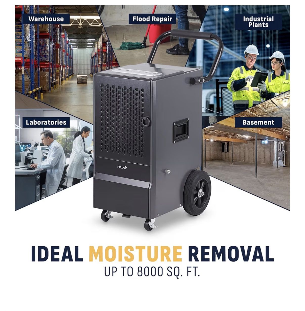 NewAir 160-Pint Commercial Dehumidifier with Pump | Heavy-Duty Industrial Dehumidifier with Drain Hose | For Basements, Water Damage Repair and Large