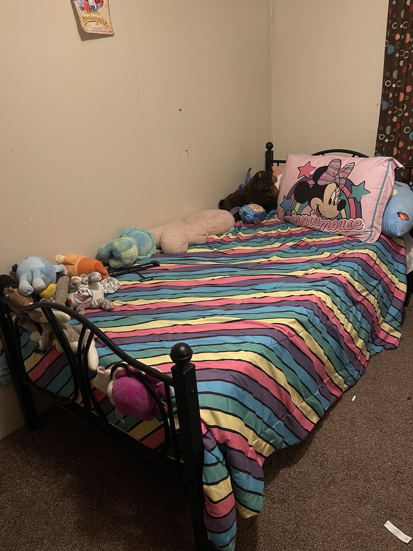 Iron twin bed with mattress. Bed and clean pet free and smoke free mattress only 6 months old. Got a bigger bed. $80